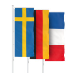 The national flags with special configuration for the Flag Presenter Basic guarantee permanent visibility of the flag on flagpoles without banner arms. Thanks to quality workmanship and durable materials, the flags retain their brilliant appearance even with regular use.